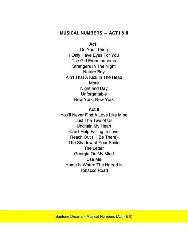Thanks to everyone who came out, in spite of the rain, to Lipinsky’s Tavern, for the maiden voyage of my one-man show, “Baritone Dreams.”